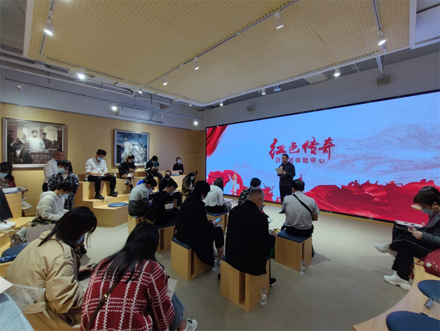 在麗竹學(xué)校黨支部書記王良友同志的帶領(lǐng)下,黨員代表李玲玲,入黨積極分子代表?xiàng)钛嗳A一行人先跟著大部隊(duì)來到了《紅色傳奇》》沉浸式體驗(yàn)中心。