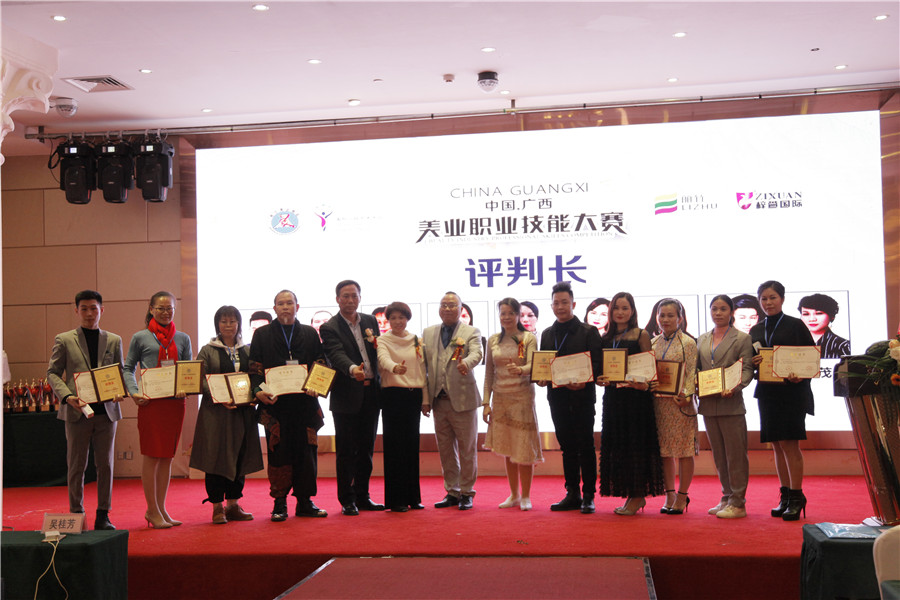 美容項(xiàng)目評(píng)判長(zhǎng):潘媛、余小蘭、韋紅蘭、歐蘭秋