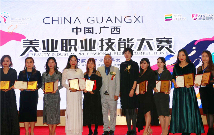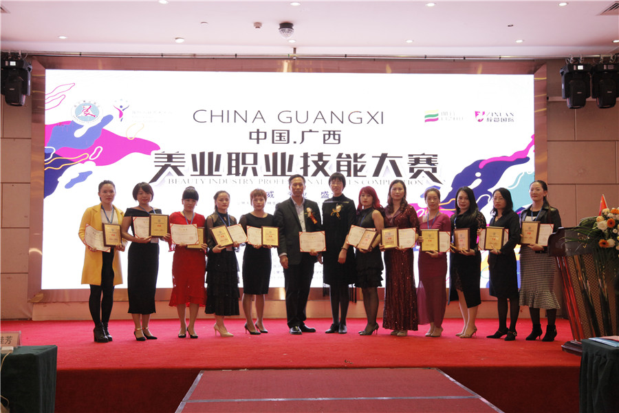 獲獎(jiǎng)名單:吳冠芹(美容)、吳秀妮(美發(fā))、蒙金妮(美甲)、趙小花(紋繡)盧艷芳(彩妝)