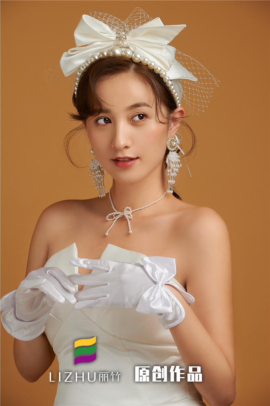 麗竹學(xué)校彩妝作品---簡約韓式新娘造型:自然輕薄的妝面似有似無,配上清新靈動的簡約盤發(fā),點綴潔白無暇的珍珠飾品,搭配白色綢緞面料的禮服,凸顯“人淡如菊”的氣質(zhì)。
