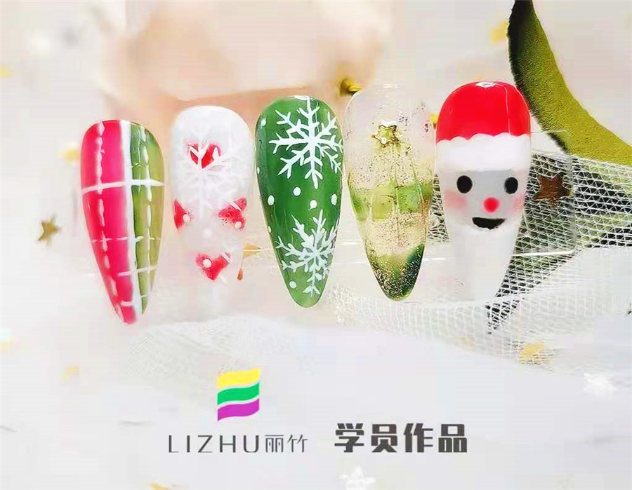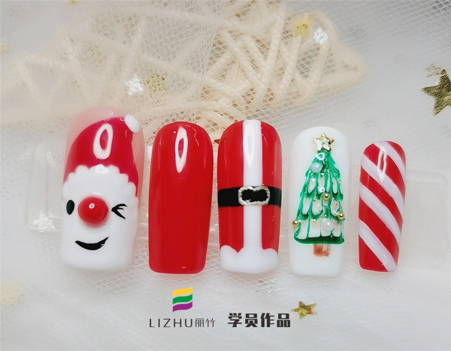 南寧美甲學校分享:綠色和紅色,雪花和襪子,老人和松樹……這些都是圣誕節(jié)到來的標志!為了將這些充滿圣誕元素的物件和人物放在指甲上,廣西正規(guī)美甲培訓學校(麗竹美甲學校)的學員們繪制了一些列的美甲作品,現(xiàn)在就來看看有沒有你喜歡的美甲款式吧!