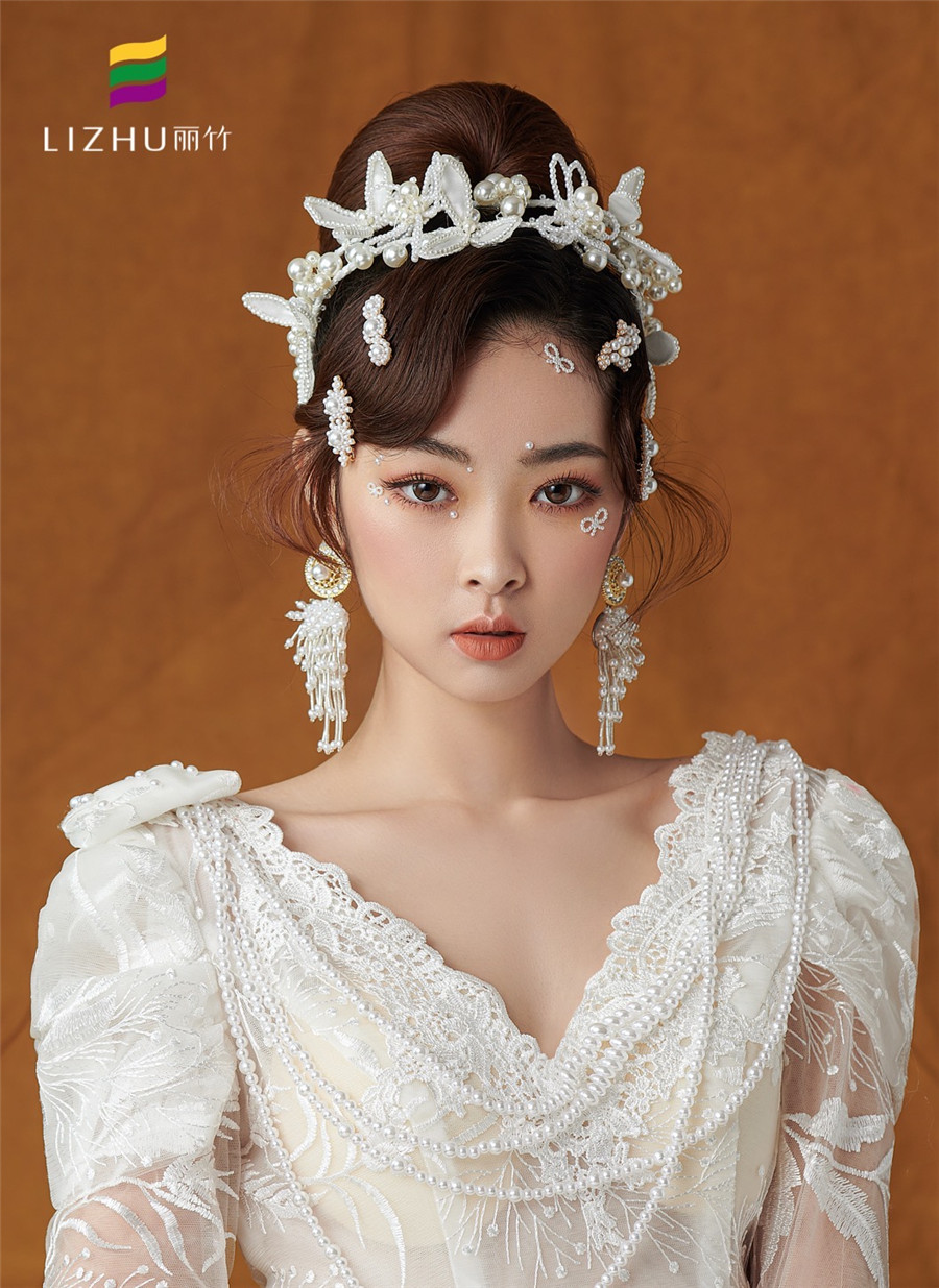 南寧化妝學(xué)校作品:輕奢復(fù)古珍珠妝容:復(fù)古簡(jiǎn)潔優(yōu)雅的盤發(fā),佩戴少女俏皮的頭飾,純白珍珠搭配的精致,展示出萬(wàn)種舊日風(fēng)情,使得微微一笑很傾城!