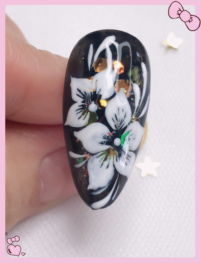 廣西美甲學(xué)校作品分享:手繪花朵美甲
