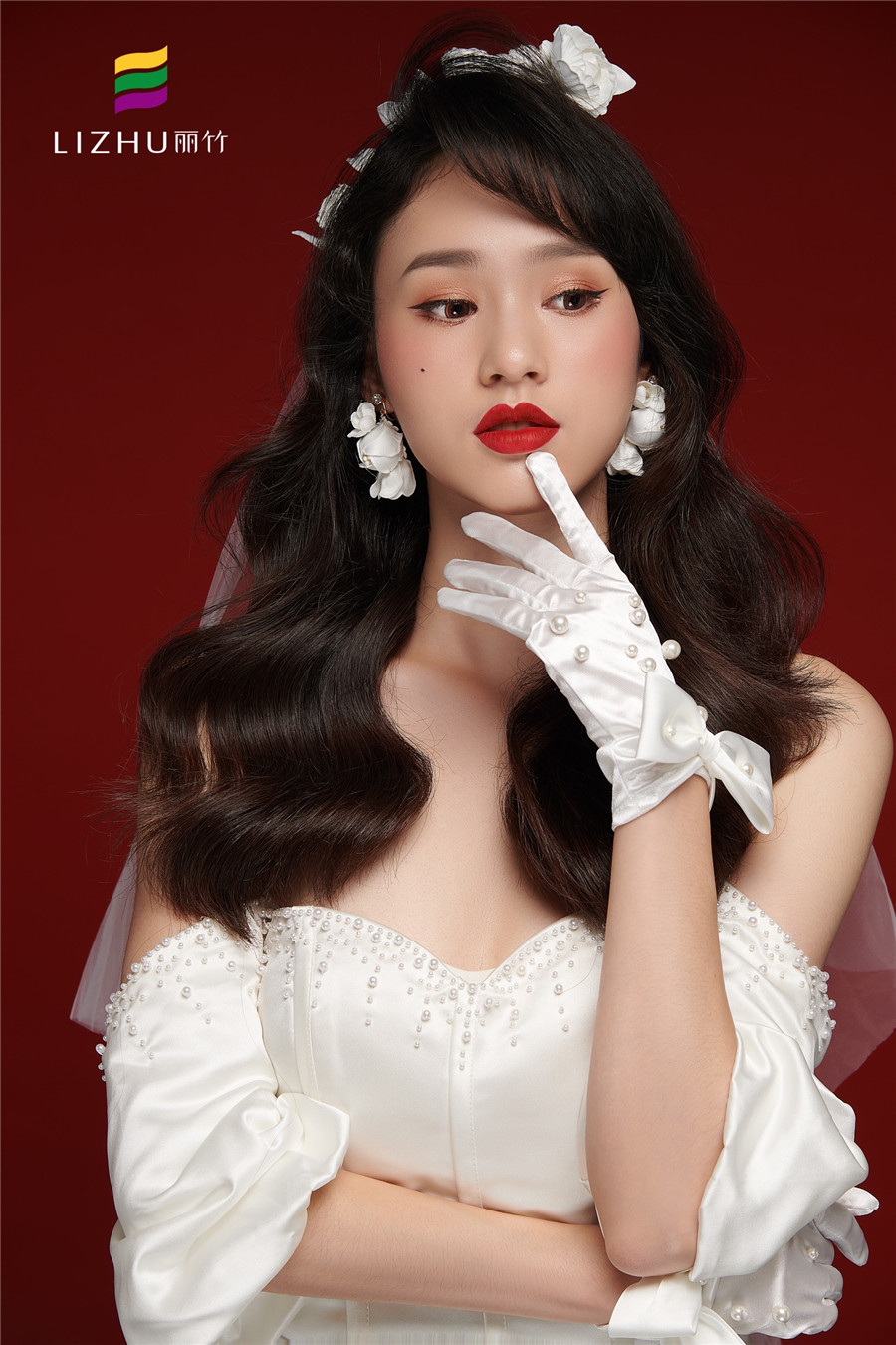 南寧人氣高的化妝學校作品---韓式披發(fā)新娘造型:很淑女又具優(yōu)雅風的長卷發(fā)發(fā)型,佩戴白色鮮花點綴的純白頭紗,配上清透簡約的韓式妝容,打造出了新娘優(yōu)雅的浪漫氣息。