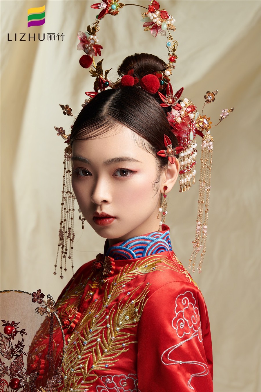 廣西彩妝培訓(xùn)學(xué)校(麗竹彩妝培訓(xùn)學(xué)校)---中式秀禾新娘造型:紅裳霞帔步搖冠,鈿瓔累累佩珊珊。金釵紅妝,一生一世中式溫婉,打造端莊秀氣優(yōu)雅中式新娘。