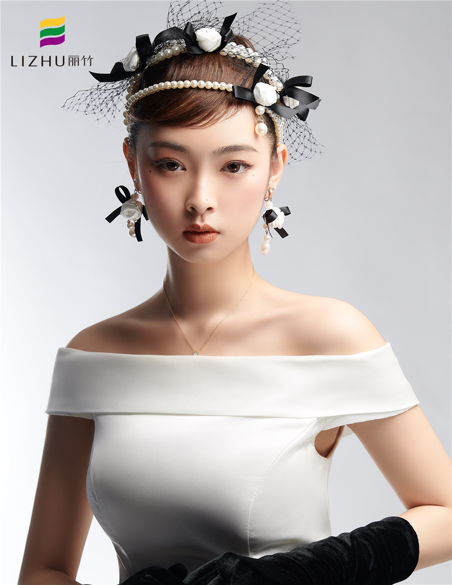 搭配網(wǎng)紗珍珠頭飾更顯優(yōu)雅