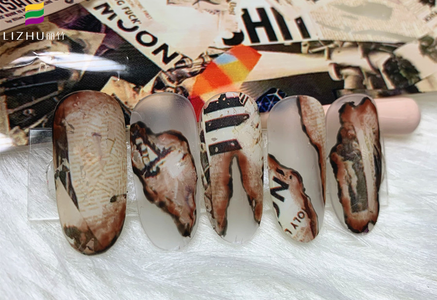廣西美甲學(xué)校排行榜-麗竹美甲學(xué)校作品證明實(shí)力:舊報(bào)紙美甲(三)