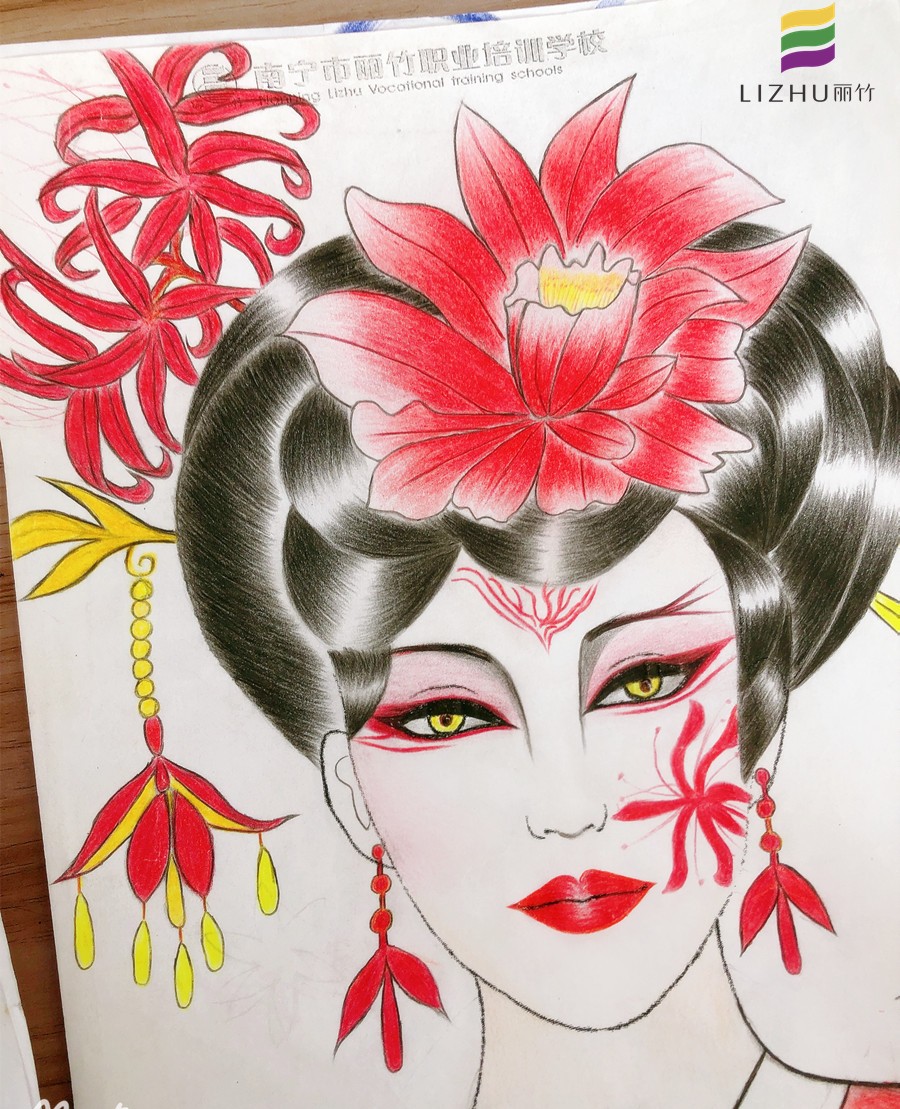 南寧哪里可以學(xué)化妝基礎(chǔ)?請(qǐng)看麗竹學(xué)?;瘖y基礎(chǔ)作品:紙妝美人圖(一)