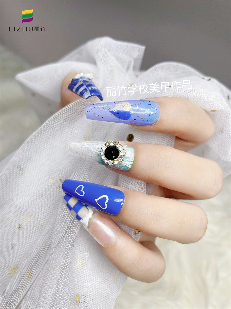南寧美甲學(xué)排行榜分享:雖然很多人都喜歡做美甲,但卻很少有人愿意做藍色系的美甲。但是南寧專業(yè)美甲培訓(xùn)學(xué)校(麗竹專業(yè)美甲學(xué)校)今天就為大家推薦一款深藍色西美甲。