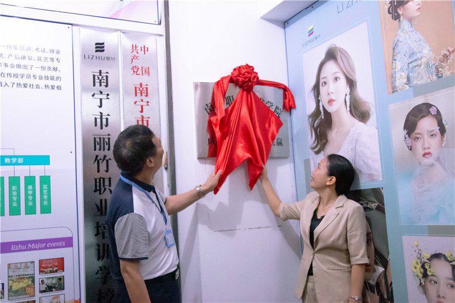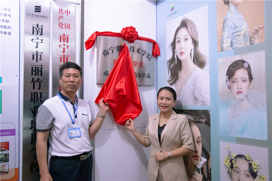 參加本次簽約揭牌儀式的嘉賓有:南寧麗竹職業(yè)培訓(xùn)學(xué)校黨支部書(shū)記,校長(zhǎng)王良友、南寧職業(yè)技術(shù)學(xué)院---共贏教學(xué)點(diǎn)校長(zhǎng)徐穆英、南寧麗竹職業(yè)培訓(xùn)學(xué)校副校長(zhǎng)歐榮蘭、南寧麗竹職業(yè)培訓(xùn)學(xué)校招生就業(yè)部主任潘偉平、南寧麗竹職業(yè)培訓(xùn)學(xué)校教學(xué)部主任劉治才、南寧職業(yè)技術(shù)學(xué)院---市場(chǎng)招生辦教務(wù)監(jiān)督主任李容、南寧麗竹職業(yè)培訓(xùn)學(xué)?;瘖y總監(jiān)玉可寧、南寧麗竹職業(yè)培訓(xùn)學(xué)校美發(fā)組組長(zhǎng)王姚芳、南寧麗竹職業(yè)培訓(xùn)學(xué)校美容組組長(zhǎng)韋紅蘭以及麗竹學(xué)校美容,美發(fā),美甲,化妝組老師。