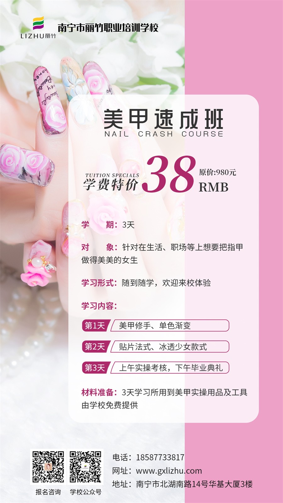 麗竹學(xué)校美甲專業(yè)報(bào)名特惠一 :美甲速成班