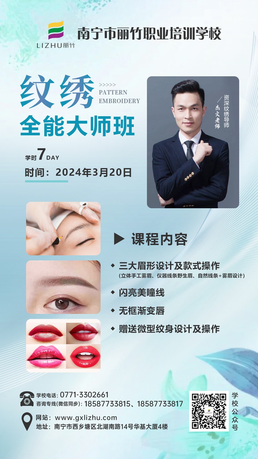 南寧紋繡培訓、南寧紋繡學校排名:想在南寧學紋繡,想知道南寧紋繡學校哪家好?南寧紋繡學校排行榜推薦你,可以到南寧紋繡培訓學校(麗竹紋繡培訓學校),去了解即將在3月20日開班的紋繡全能大師班的詳細課程內容以及報名優(yōu)惠活動。